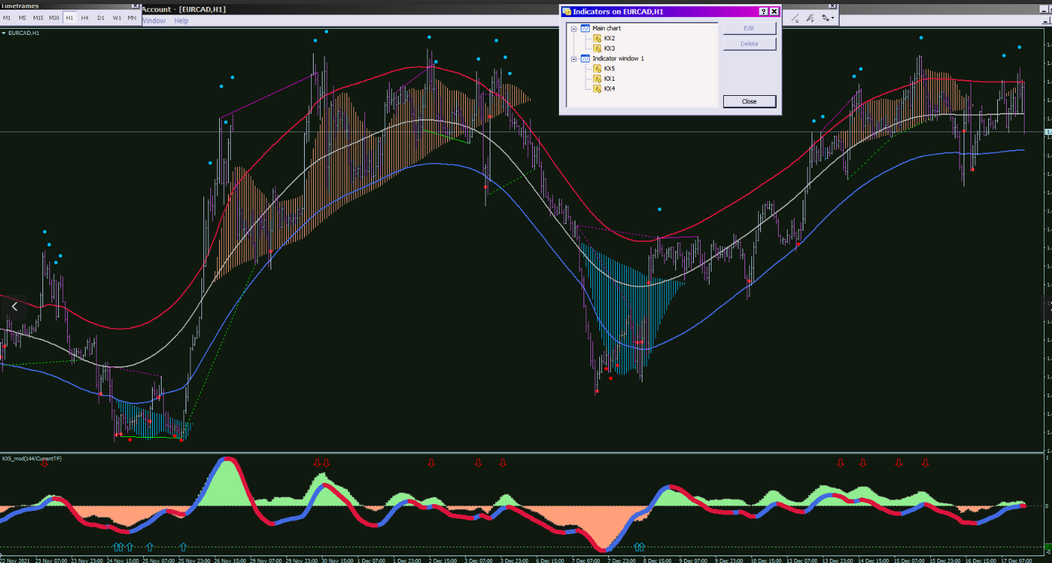 KX2 = does not draw .. dual Keltner channel: fast and slow .. fixed periods and channel spreading factors.