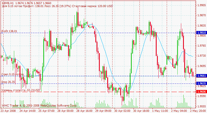 The indicator is designed to calculate the orders . He will automatically display in the upper left corner of the chart size in dollars of profit for profit, the amount of loss for loss and this margin to put up the number of lots and draw a line on the graph above which will stop out .
