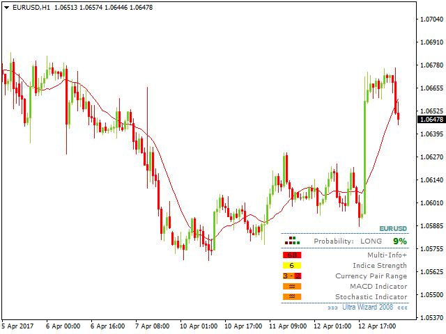 Ultra Wizard indicator produces an internal technical analysis of market conditions on the basis of readings of indicators ( MACD , Stochastic, etc.), and outputs the coefficients of the trend with its strength.
