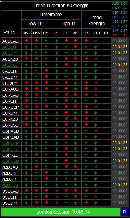 - Trend Strength: ALL 3 arrow must in the same direction red sell green buy