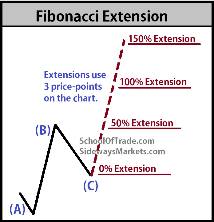 The Fibonacci extension is going to measure the distance from point 'A' to 'B' and then spreads from the deepest point of growth at point 'c'