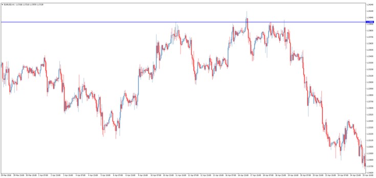 For a better understanding, let's take one of the levels built on the hourly chart. For example, this is the level of resistance in the euro / dollar pair, built at a price of 1.23966.