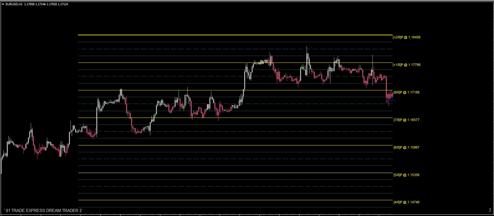 One of their indicators is the "matrix of the market" -Murray. It is important for us at the senior timeframes-М30, Н1, Н4, although it does not change its values on М1, М5. It is enough for us to know the rules of working with the Muri-zones, which has already been described. On the example of EURUSD it can be seen that the price could not exceed 18408 or so.