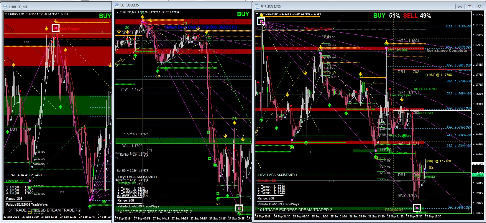 One of the most important moments is the use of "3 Elder screens". In this case, the trader receives enough information to make a decision. The multiplicity of 5 is important. For example, M1, M5, M30. After determining the possible movement of the price during the session, the senior timeframe can be closed and operated, for example, on M1 and M5. Ideally has 3 monitors, although the quality of work on 1 monitor does not suffer if you own the situation.