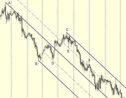 When trading using the multipivot Midline, some trading principles need to be considered. Andrews emphasizes that these are not absolute rules, but only general observations that will help the trader know what to expect when using the Median Line. Trading Principle 1: When the Median Line is drawn at the most recent fluctuations, the price should return to the Median Line about 80 percent of the time. Trading principle 2: When the price returns to the Median line, this place often becomes a new pivot point on the Median Lines. Trading principle 3: When the price returns to the Median line, it often forms several small fluctuations around the Median. Lines before further movement. We add that it makes sense to consider the possibility of entering the turn on the Median Line only in the direction of the main trend and when confirming a turn from the oscillators. Logging on trend when rebounding from the top or bottom line of the forks has greater reliability.
