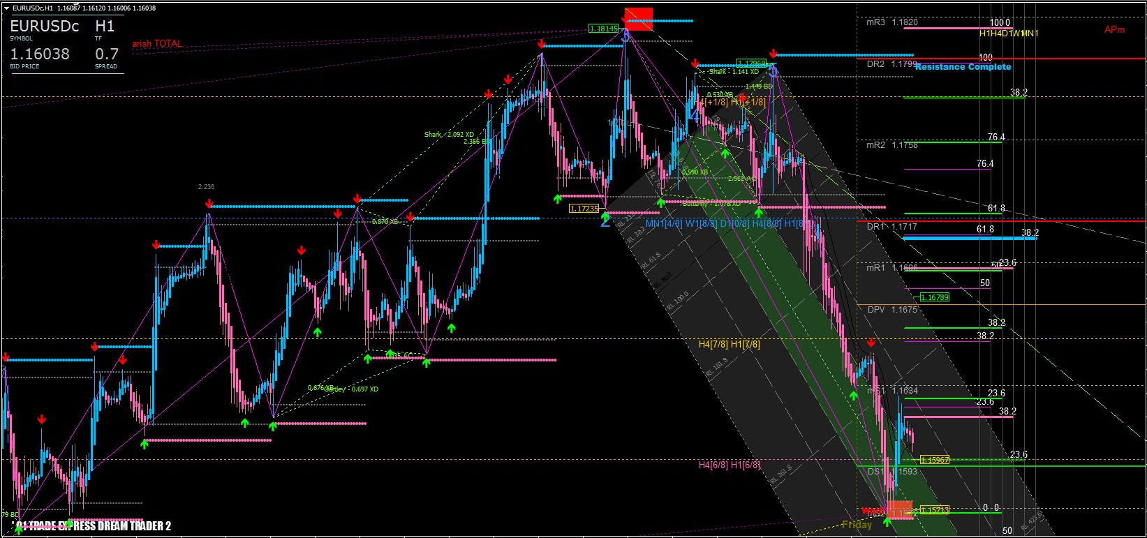 The warning line and moves to the next Warning line, built according to the same rules and located on the distance BC / 2 from the first. Also in fig. 1, you can see the blue dashed lines running inside Andrews' pitchfork parallel to the Median line at distance equal to half the distance from the median line to the top or bottom line of the forks. Let's call them Intermediate internal lines. Intermediate internal lines are usually quite weak. Nevertheless, it is not uncommon for