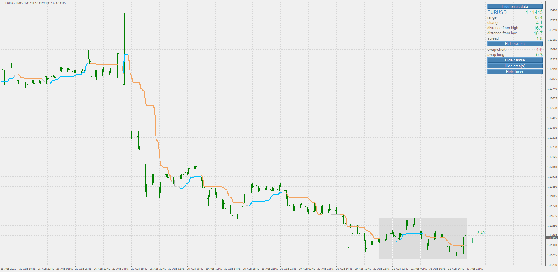 MLADEN : One more version of "simple trend" indicator - this version is extended with some additional controls that are monitoring short term trend and if the volatility is telling so,it can temporarily set the "Trend" of the "simple trend" to neutral state . that is when the line color is gray - like on the example picture - conversion period should always be shorter (much shorter) than the calculation period