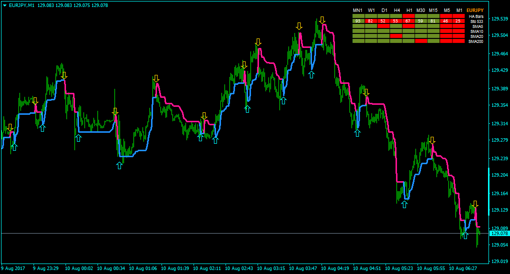 A kind of trending indicator "Wilders Trailing stop with arrows and alerts - simply 2 parameters,length and coeff values
