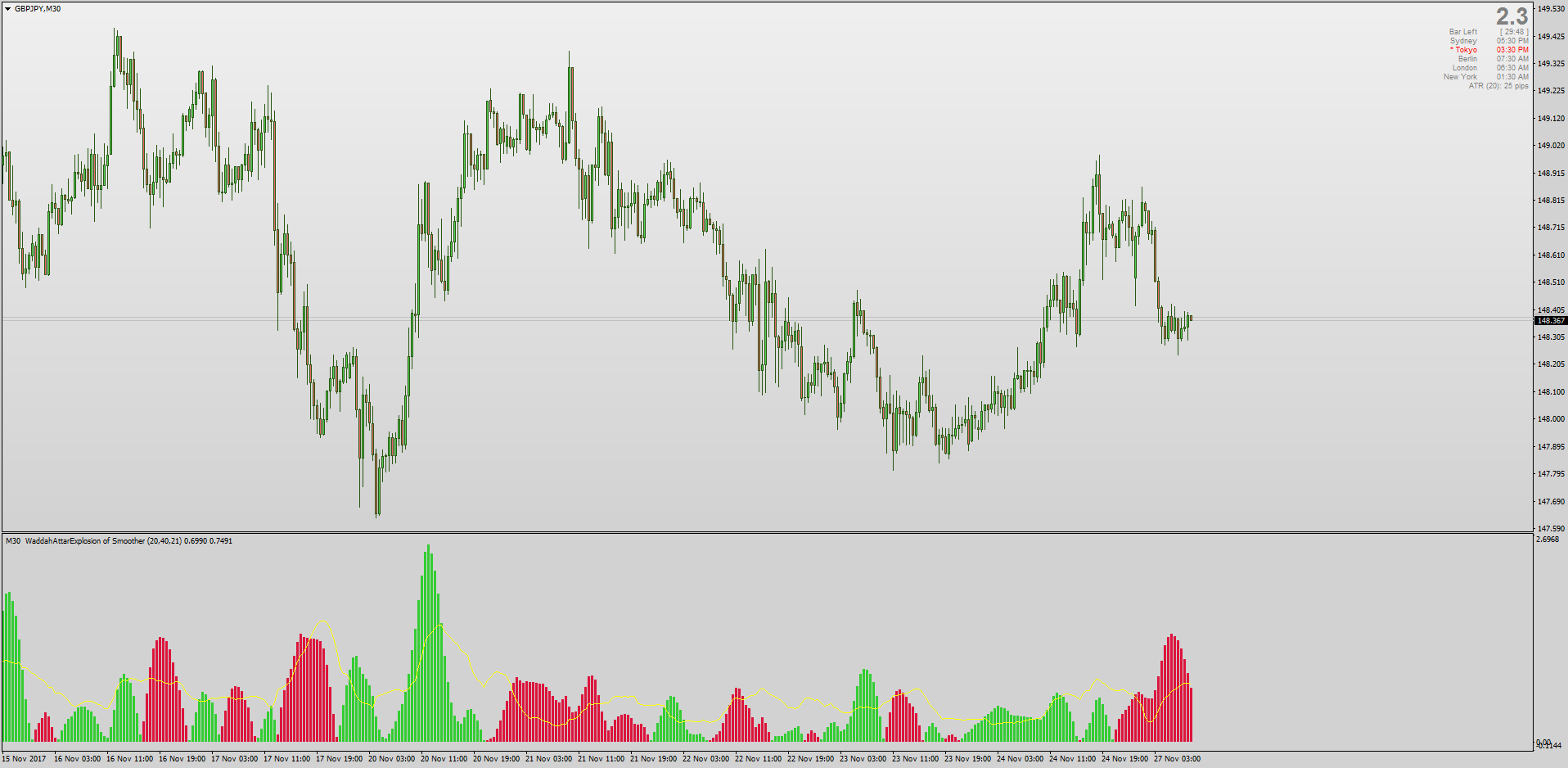 - The Waddah Attar Explosion is made to be used on the 30 minute chart