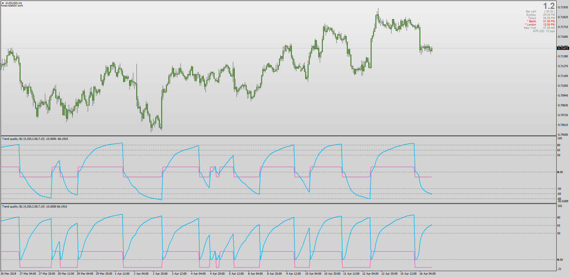 There are 2 "flavors" of Trend Quality indicators : the Q indicator (which is in a strict sense the "quality" indicator) and the B indicator (or a "trend-noise balance indicator") Both of these versions are going to be varied since both can be modified in order to show the whole thing a bit differently.