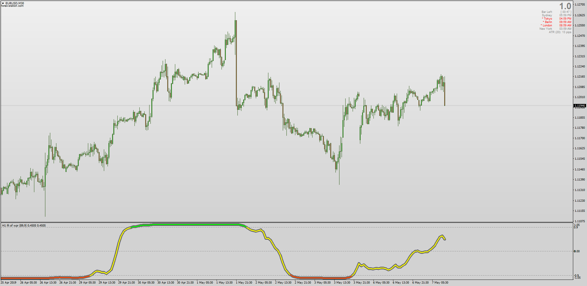 The IFT (Inverse Fisher Transform) WPR (Williams %R) which also comes with Multi-timeframe + Interpolation.