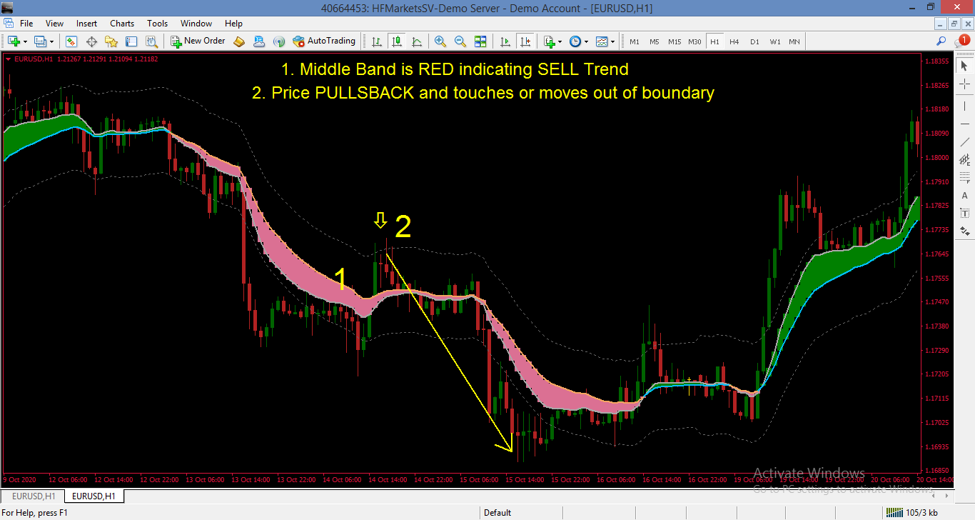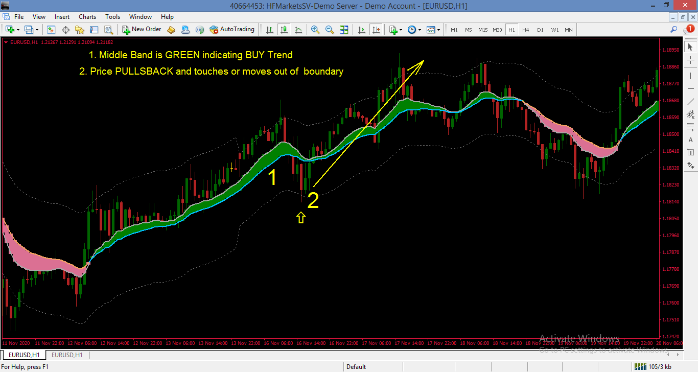 However for the second request, I wanted arrows NOT when there is a crossover BUT when price bounces back and touches or moves out of the boundary/envelope whilst the middle band is RED or GREEN for SELL or BUY respectively.