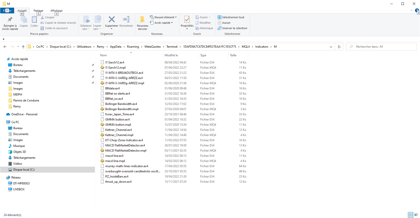 You must unzip indicators in a subfolder named M in the MQL\Indicators...