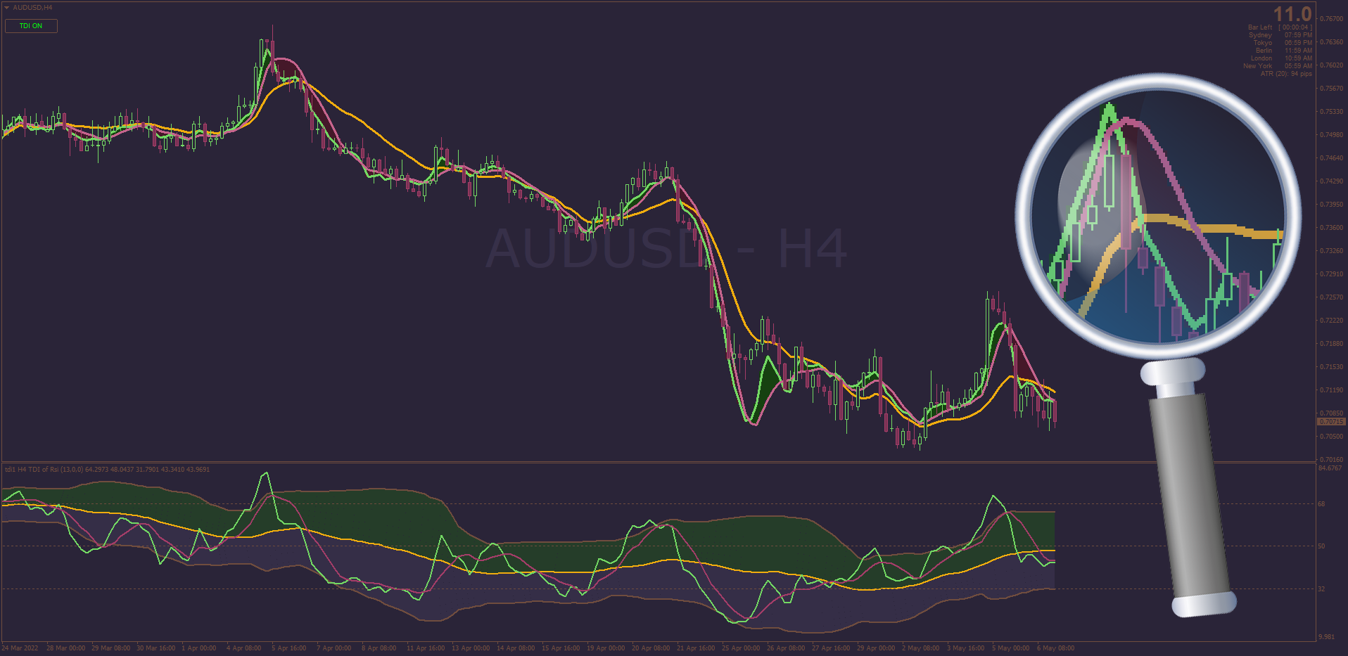 The ingeniously coded TDI "On Chart" (MA style) indicator has now been upgraded by Kvak who has made this non-repainting TDI more user-friendly & equipped with a Ribbon display as well as a choice of 6 x RSI's + more. A template is also available, here: viewtopic.php?p=1295476865#p1295476865