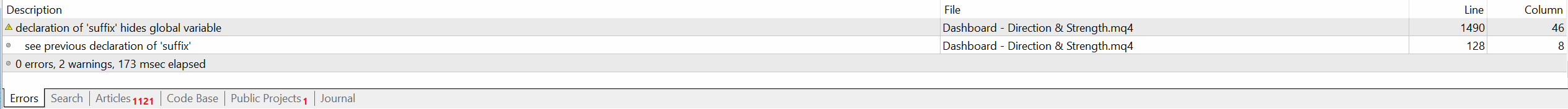 cant load, this is mt4 compile result.Narutopips wrote: Fri Apr 29, 2022 8:51 pm Dash for trend direction and strength. Hope it will be useful for someone here, also used for confirmation.