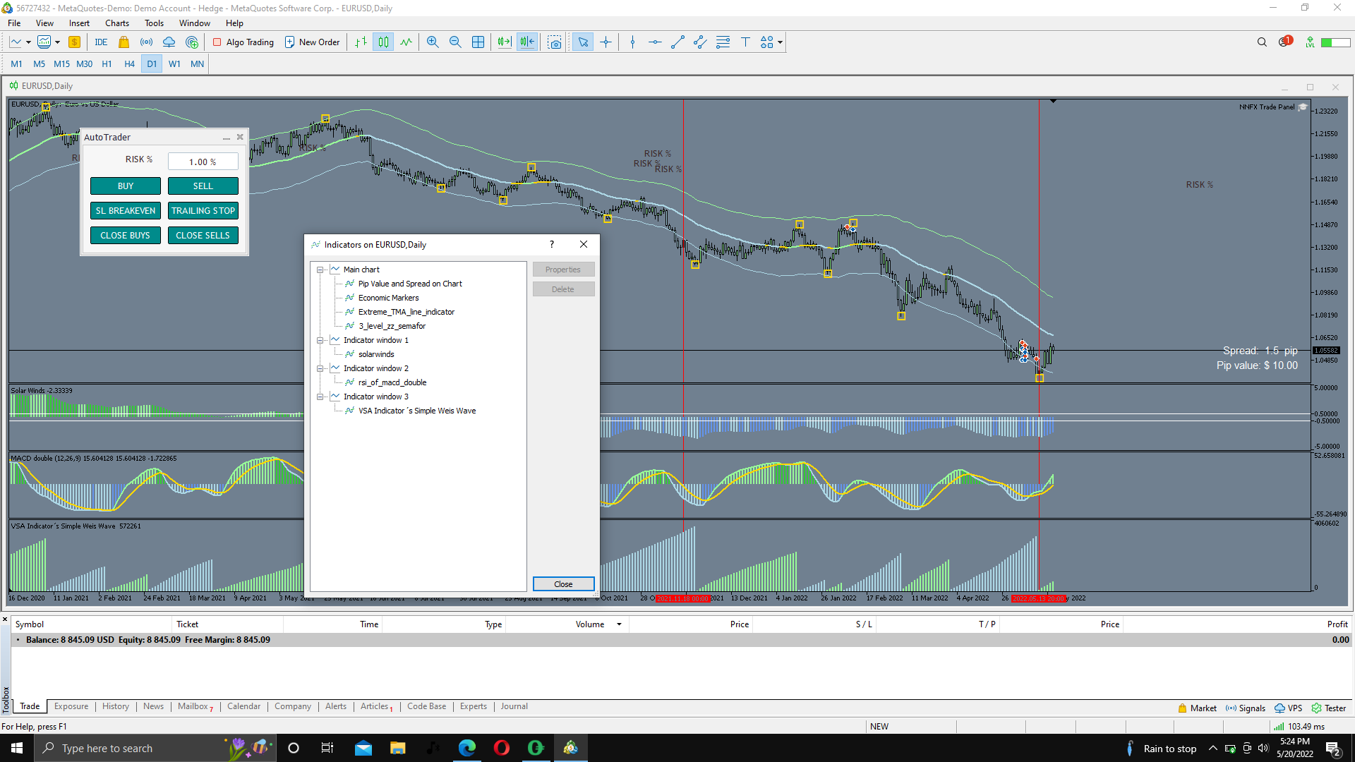 economic markers and nnfx trade panel are from the market