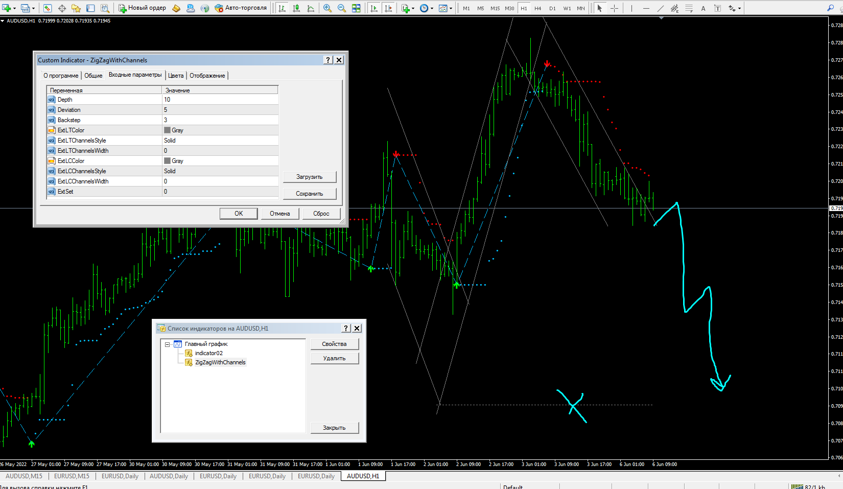 To determine the purpose of the movement, I usually use this indicator. It is made on the basis of the Vadimch method. This is a Russian trader who saw this proportion and created a method for constructing it about 15 years ago. This method still works. Trend targets are always met, against the trend they are only met on strong corrections.kysbog wrote: Mon Jun 06, 2022 9:38 am Yes, its basically the same indicator but the signal period at 9 calls it a bit earlier than 12.