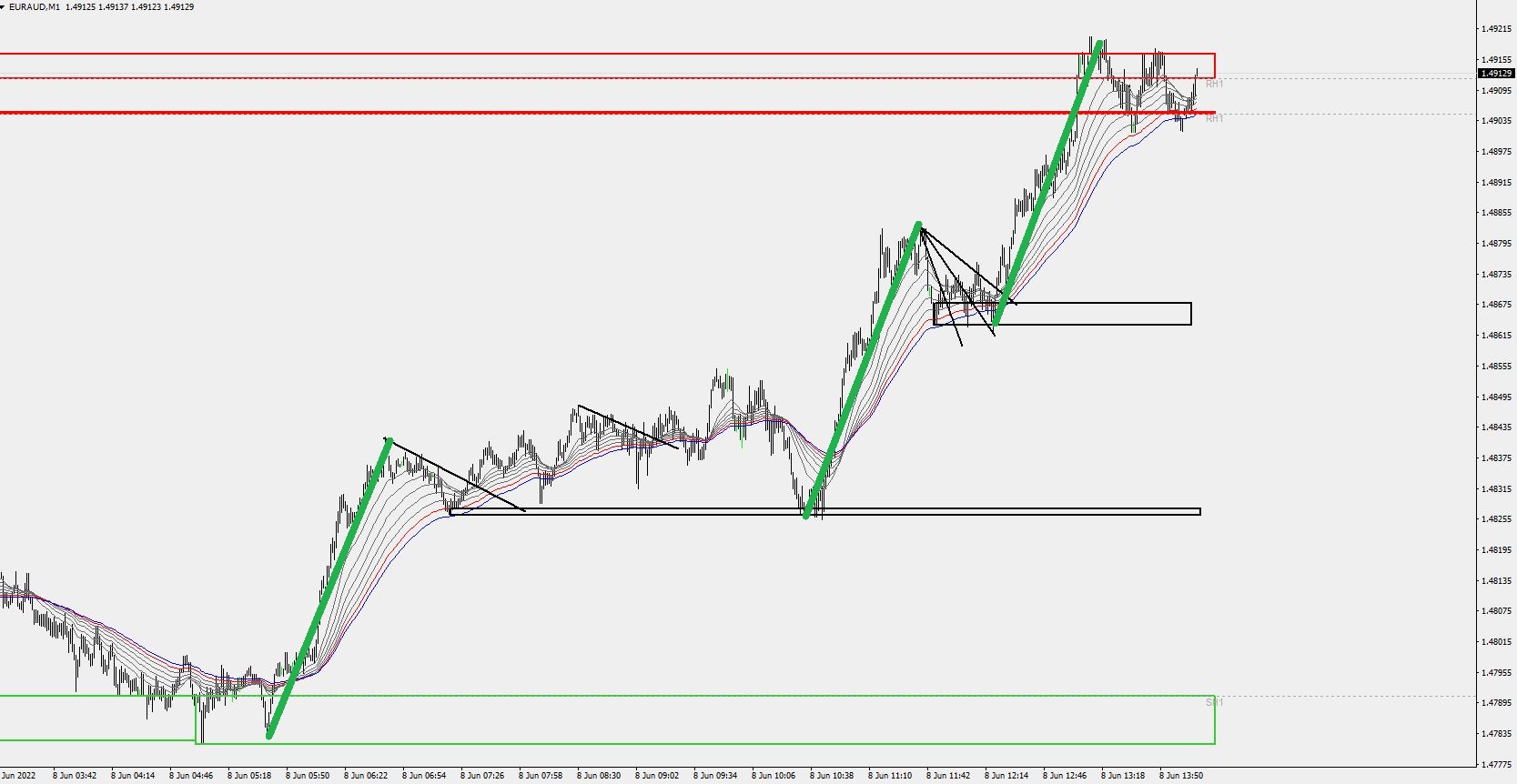 noticed the impulses (and retraces)?Meyney wrote: Wed Jun 08, 2022 9:15 pm longs euraud, right now at SD zone 1H. will price will zigzag through this zone or bounce down.
