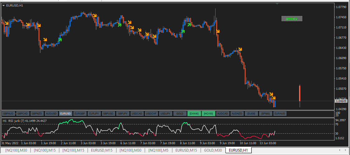 6 type of rsi, mtf with AHTF , arrows, alerts. Adjustable levels and two mode for arrows- signal to oposite signal or all break levels arrows..