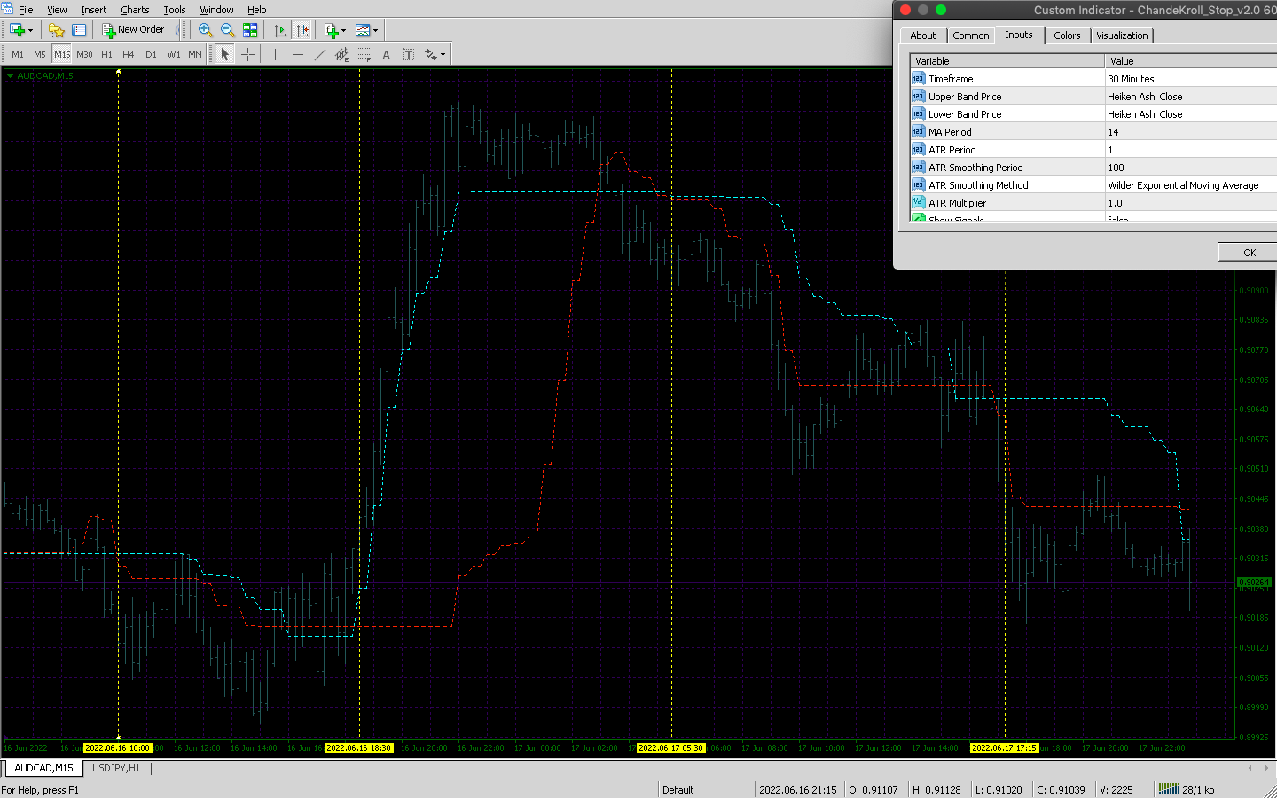 Hello, i have a request that i dont know if its possible. if it is, I would appreciate one of the coders doing it. I want a signal when the bullish line cross the bearish line on the Chandekroll. I drew lines on examples. I am seeing how it behaves in higher timeframes with different settings to avoid ranging. You guys can try different settings. So basically when bullish line above bearish, it is high volatility so u can trade. You just use other indicators to indicate buy or sell. Thanks a lot