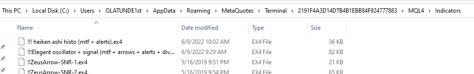 Thanks for the reply. I got to where you instructed. So what should i do from there please?Ogee wrote: Fri Jul 08, 2022 4:37 am If deleting the community file didn't work - instead of 'config' go to MQL5 > Indicators and delete the indy suspect causing the problem.