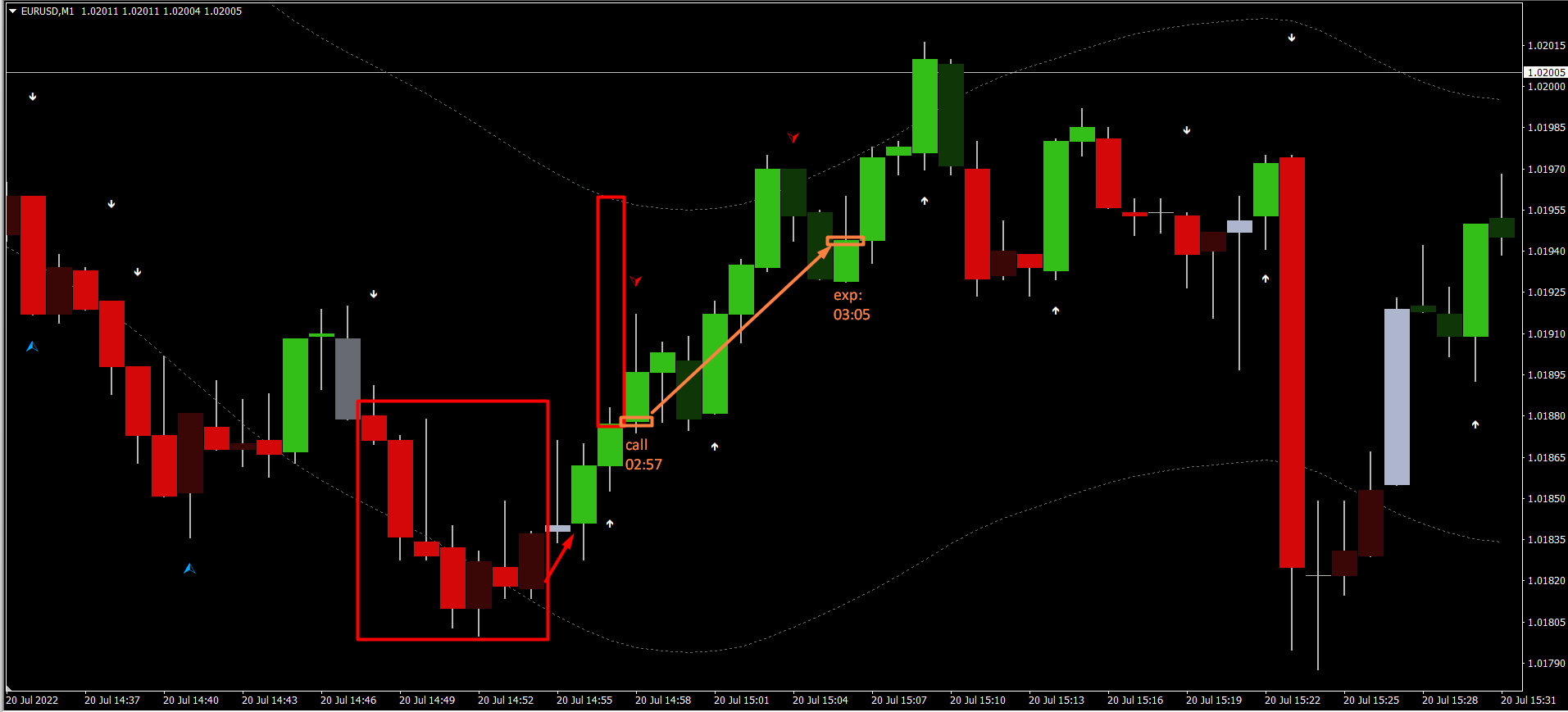 expiration time: end of the next candlestick of the timeframe above the current one.