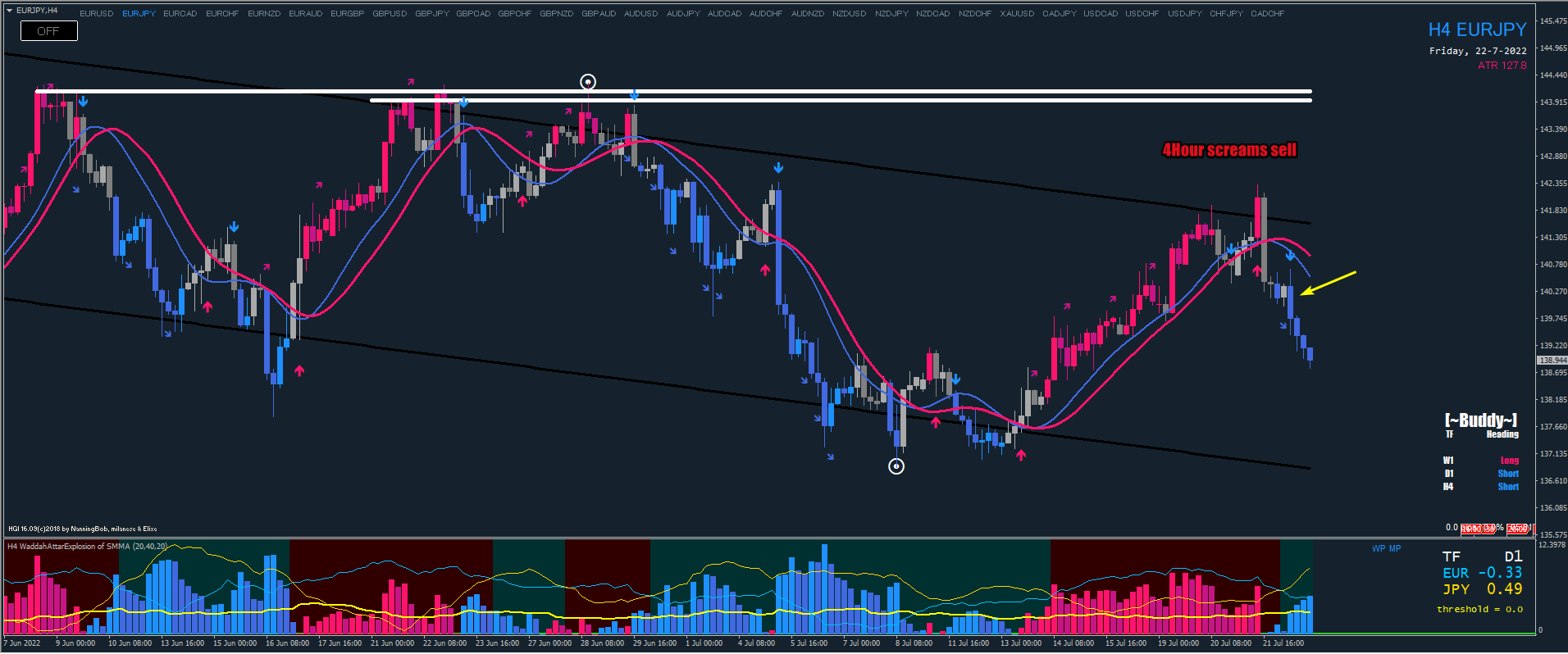 I planned to add into EJ, I took an "early" entry on the hourly chart so I chose a wider stoploss. So the plan was to add into sells once the 4Hour closes. Sadly my Internet went down for the whole day and I wasnt able to.