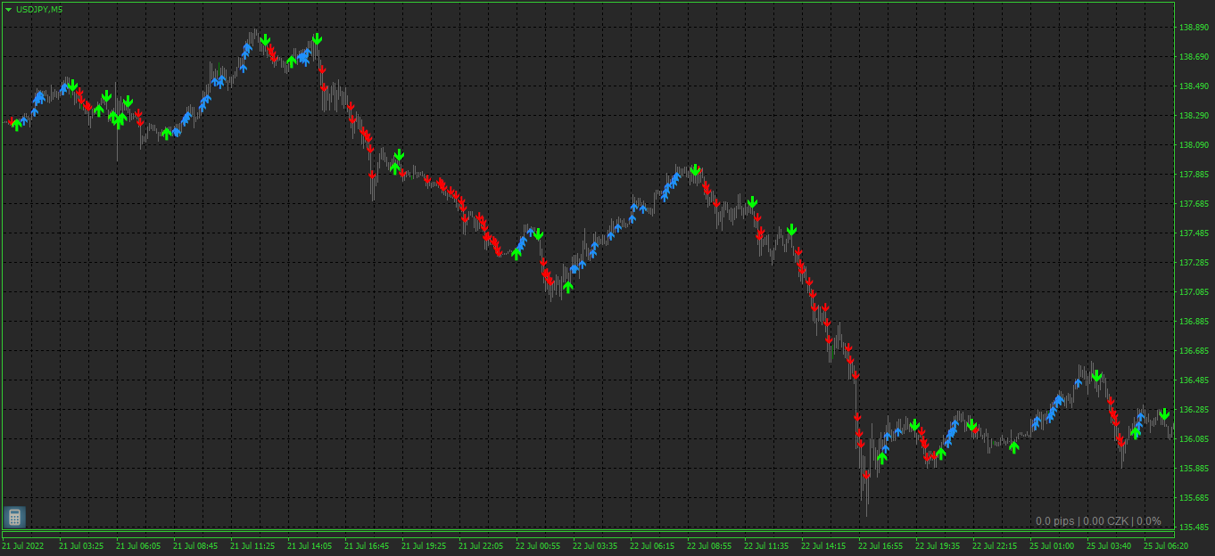 Enter positions on the Blue and Red Arrows in the direction of the Trend Arrow (green).