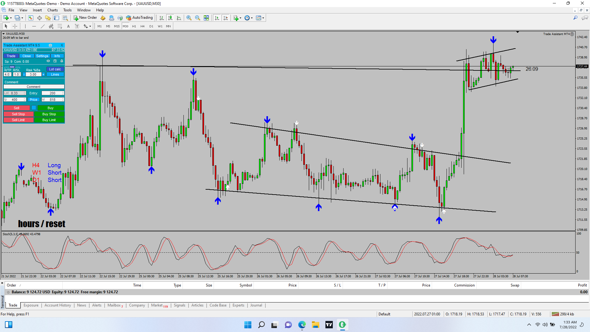 closed , waiting for white arrow blue arrow and stoch is best bet not just blue and stoch
