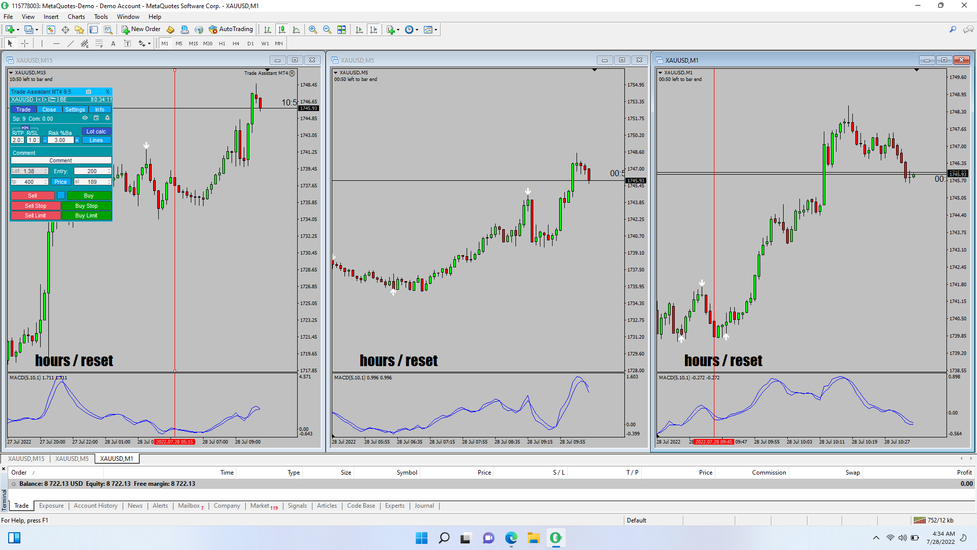 lowertimeframe or current (macd cross or arrow) exit