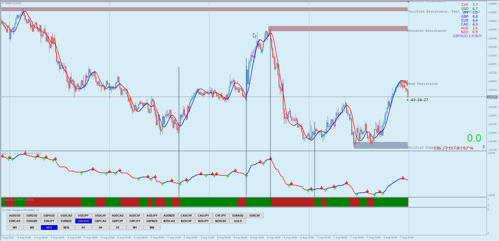 3. VQZZ histo bars turns green from red.