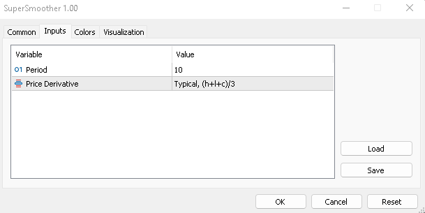 The Super Smoother indicator is suited for filtering random market noise. It is superior to the traditional moving averages (EMA) in filtering irregular movement in the price data of an asset.