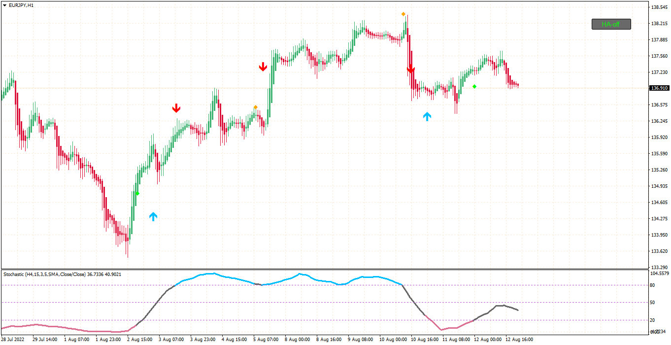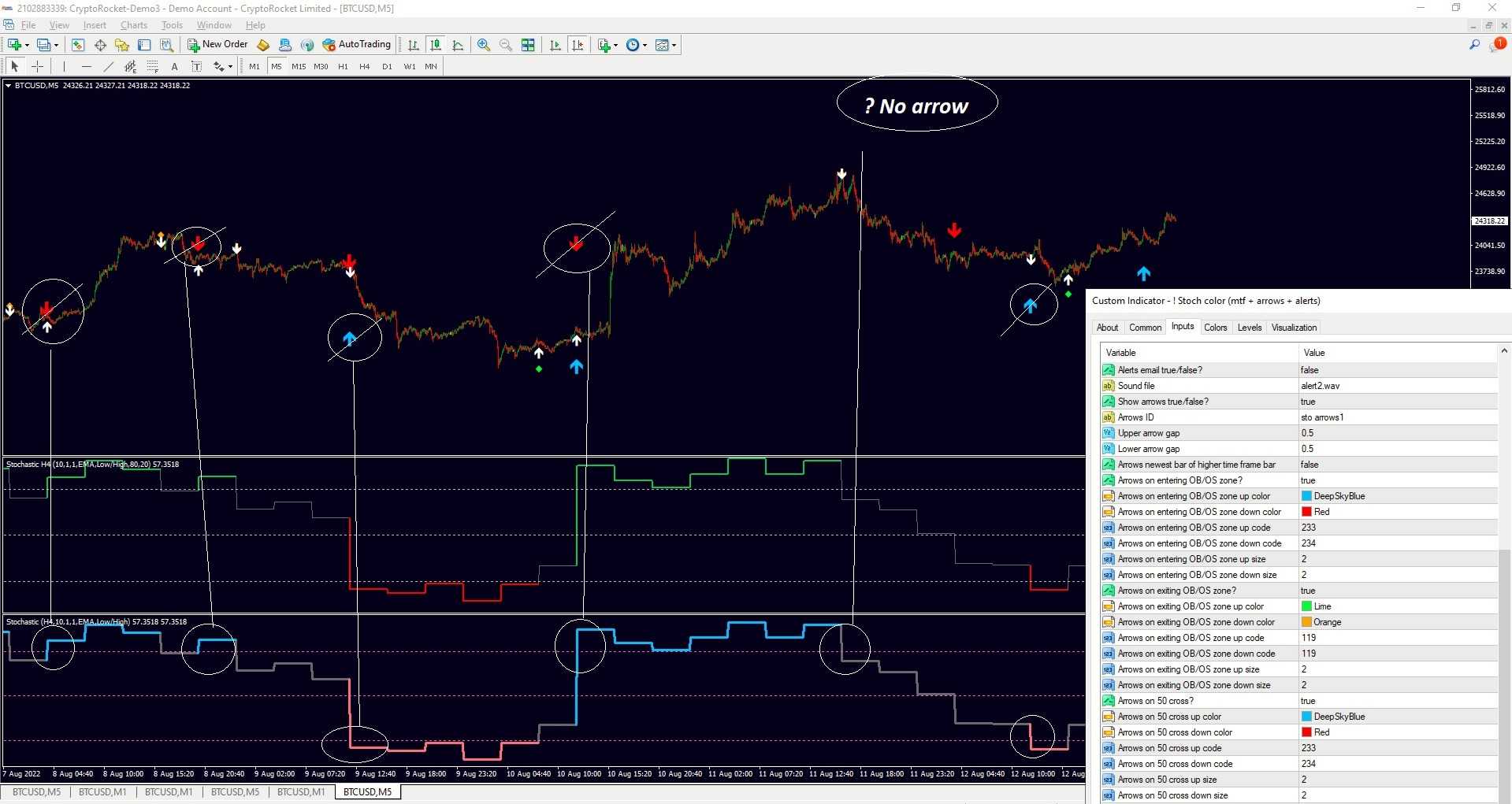 Also, when the stoch crosses down the upper zone, it does not draw any arrow.