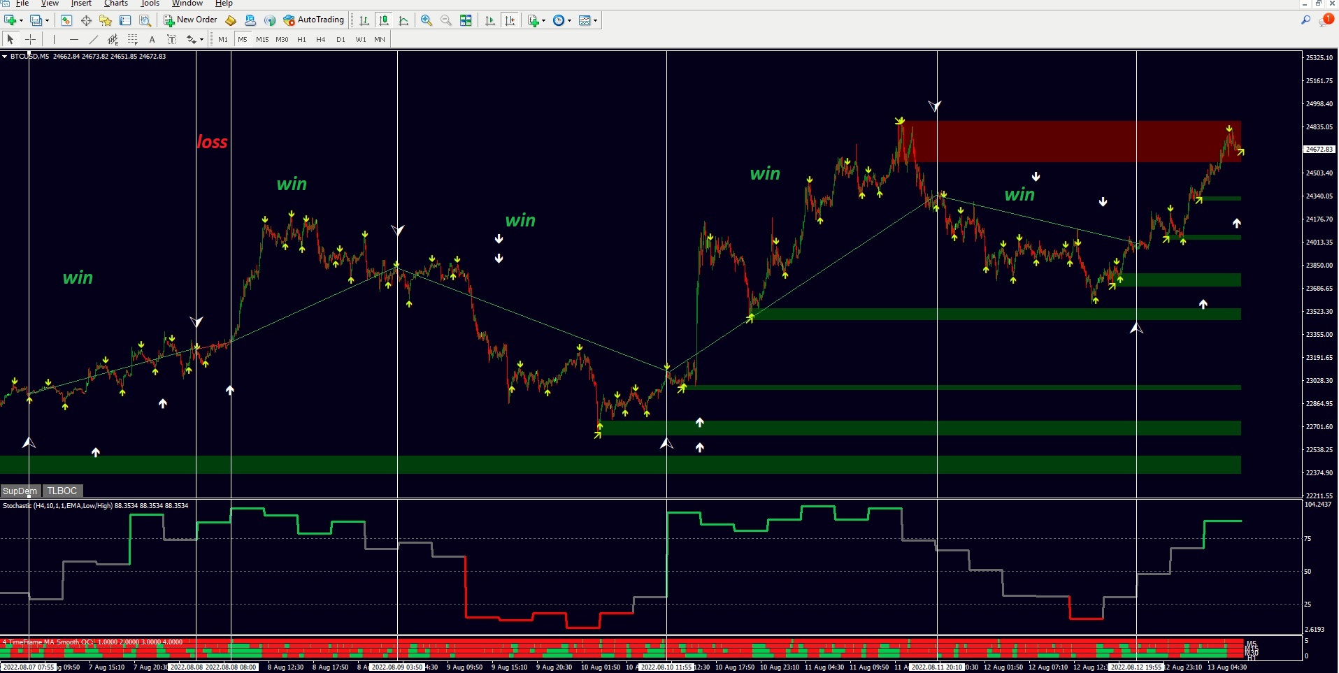 But I am not using it this way, for actual entries. I am using it for sensing small reversals and trends, with arrows on newest bar = false.