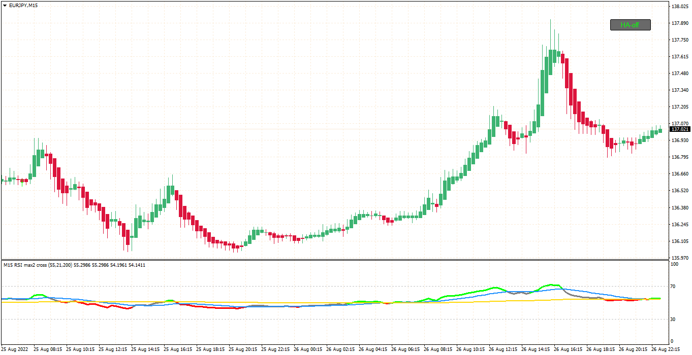 With the 3 period lwma of rsi it was almost the same as the 55 period rsi to get more signals maybe try something longer than 3chickensword wrote: Sat Aug 27, 2022 9:45 pm Dear Mr Tool could you please color code an