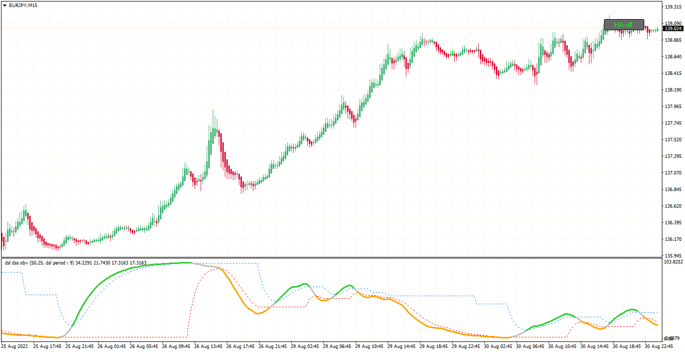 DSS Double Smoothed Stochastic of OBV (On Balance Volume)