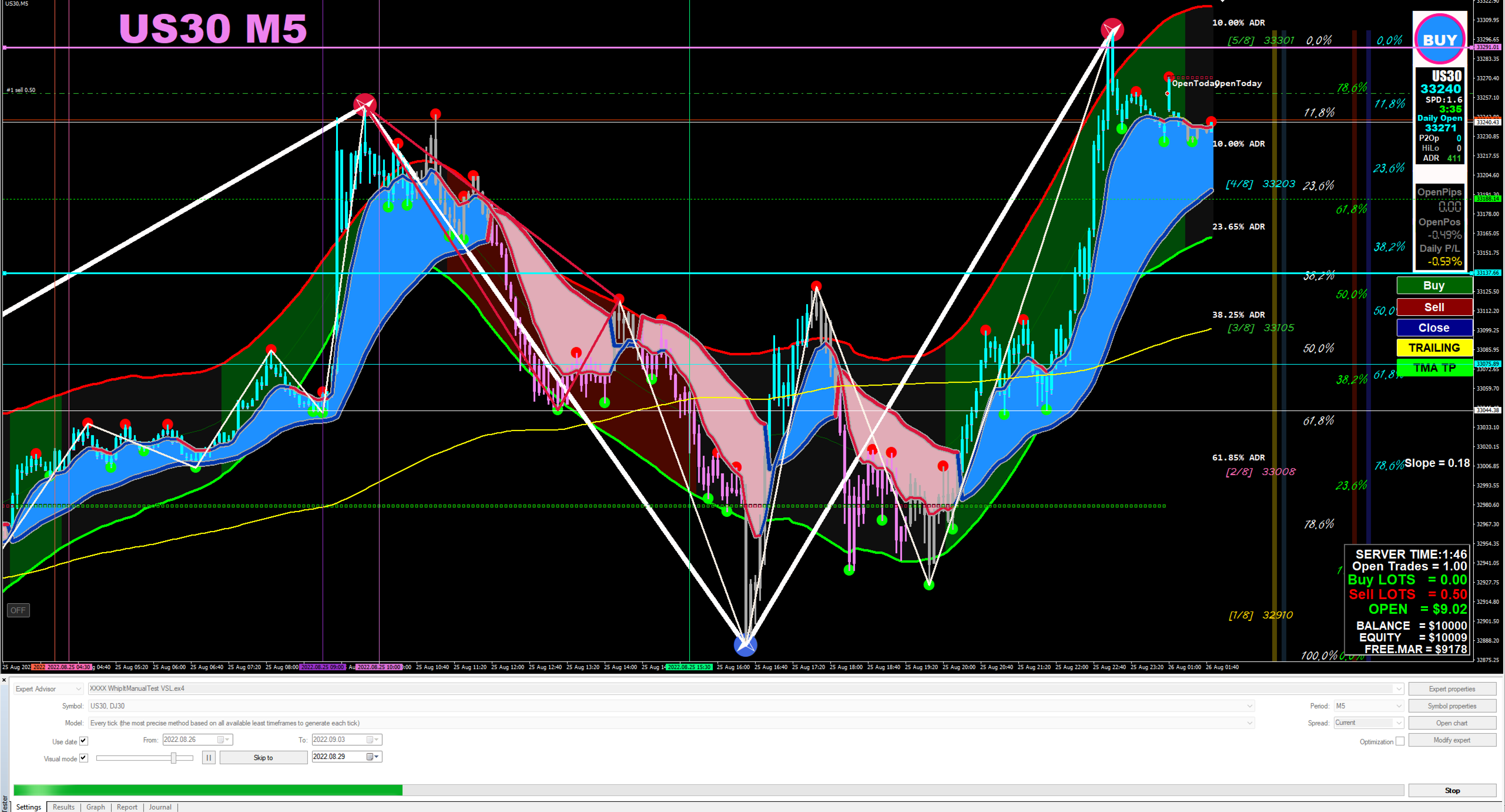 You can buy or sell by clicking the buttons when you see the right setup and close at anytime you wish, when a trade is open you can add more and move the TP and SL as you want.
