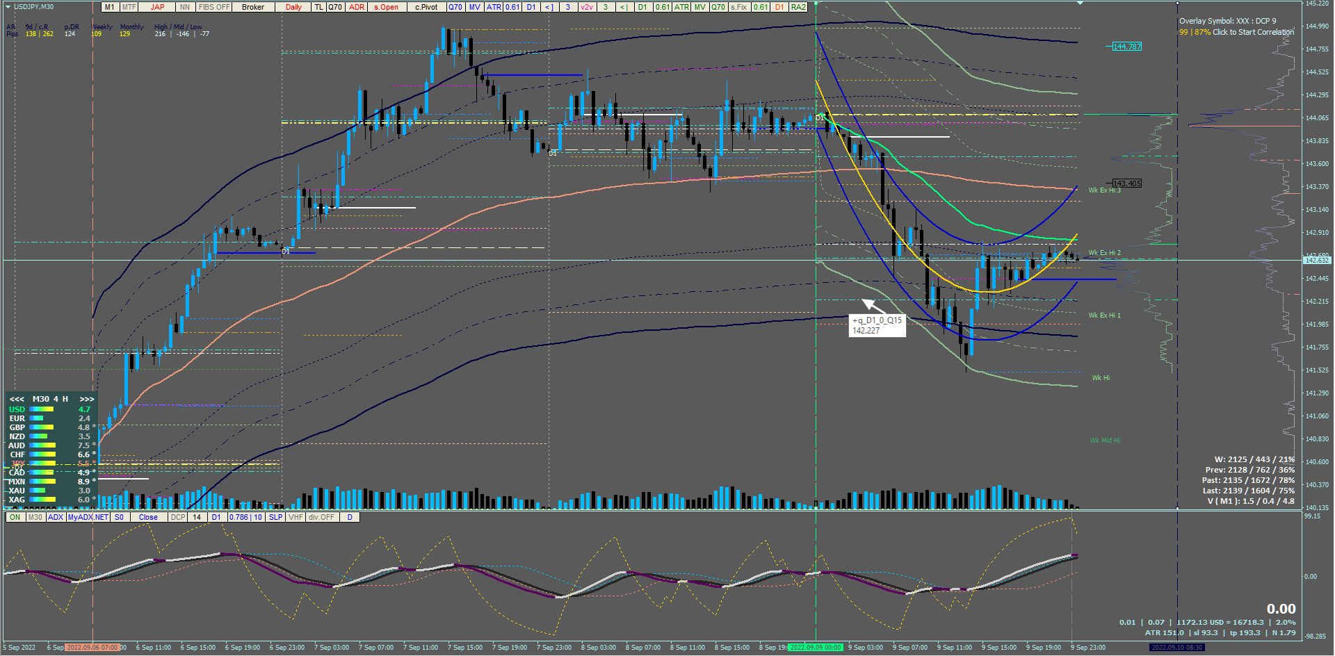 PVP is color coded with a default color of Yellow line in dash-dot-dot (Daily, Weekly...etc), VWAP is on white, and Quantile is on Cyan...