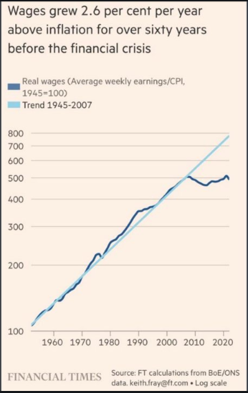 Something went horribly wrong after GFC in 2008… real wages were steadily increasing for 60 years…. but after GFC real wages were stagnant for 12 years and are now declining… the population is getting poorer.