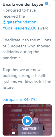 This unelected and unaccountable member of the European elite, vonderleyen, is proud to accept an award from Gates for her efforts to create an authoritarian globalist health system is a symbol of the corrupt and anti-democratic forces the people of Europe, and elsewhere, are up against.