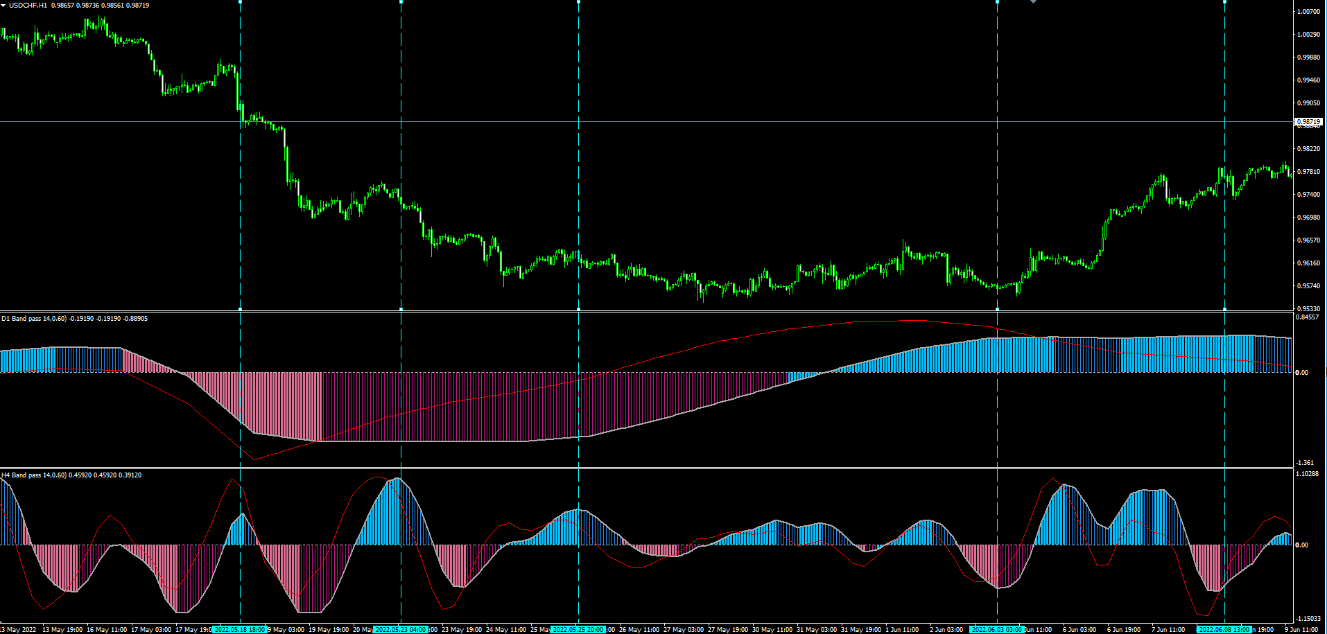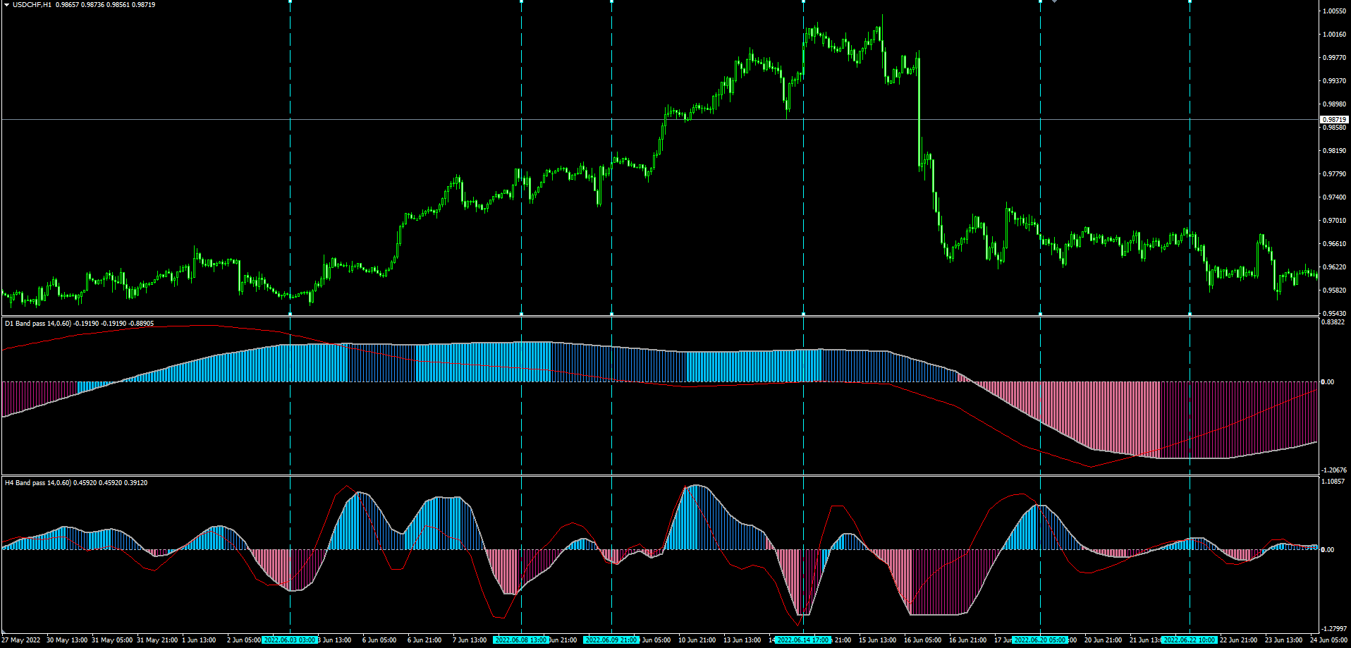 Example(Upper :D1 Lower :4H on 1H Chart)