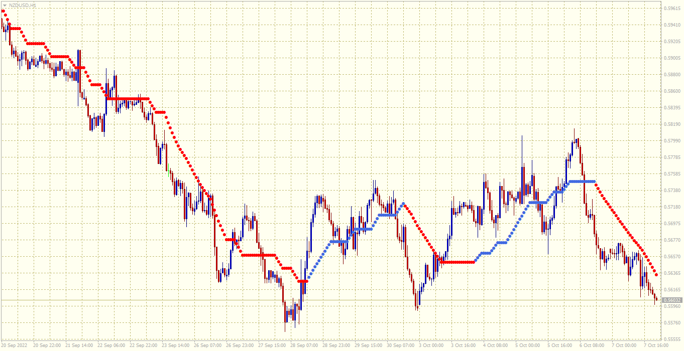 - As the dots sit closer to each other, this indicates a ranging, (no trend) market