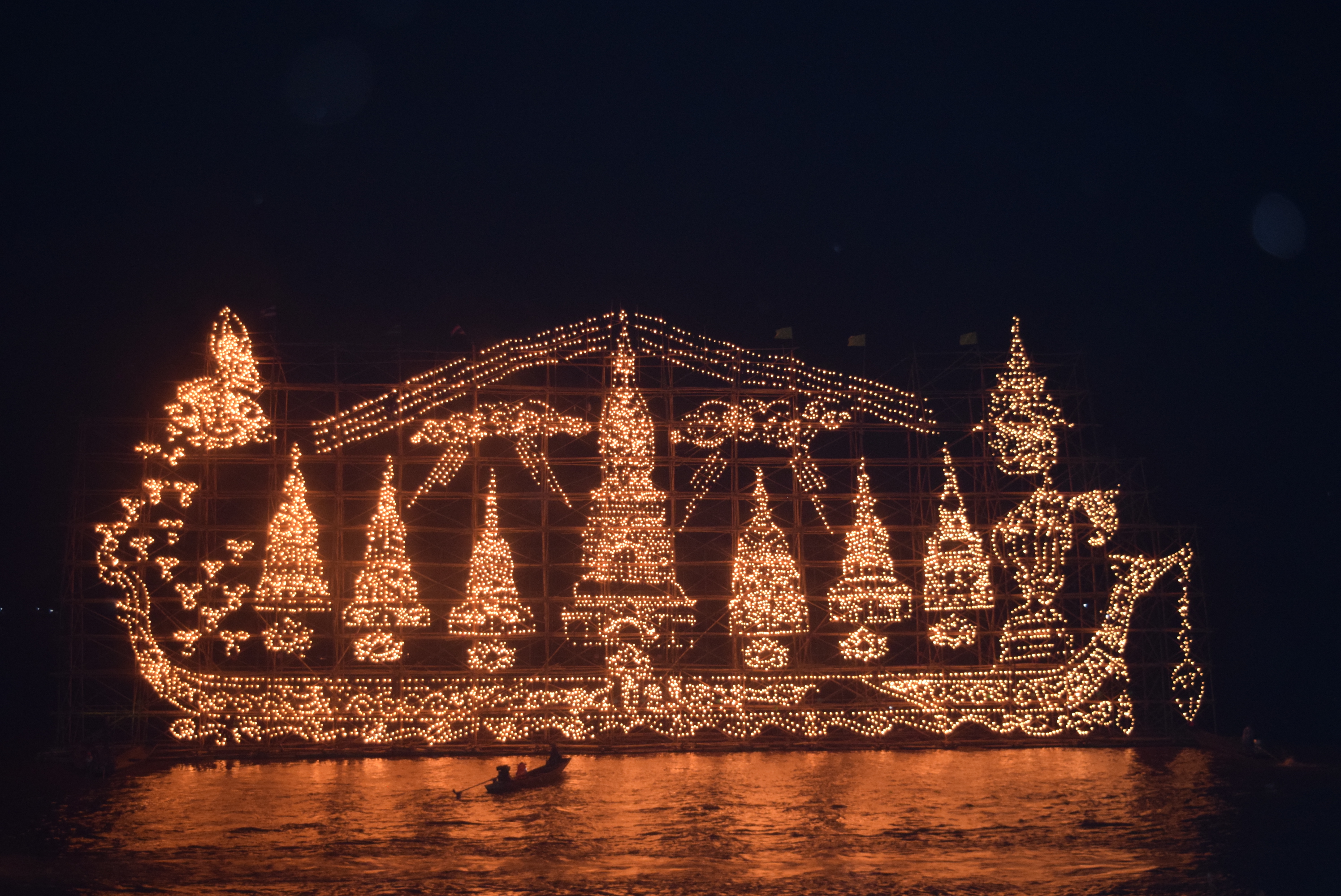 They use a bamboo structure on a floating platform and hang up thousands of small bottles filled with Kerosin. To light up every single one of those is already a huge task. Yeah, I know, but the WEF and Greta said they will look the other way and ignore the bit of Carbon footprint this cultural tradition may leave behind........... :D