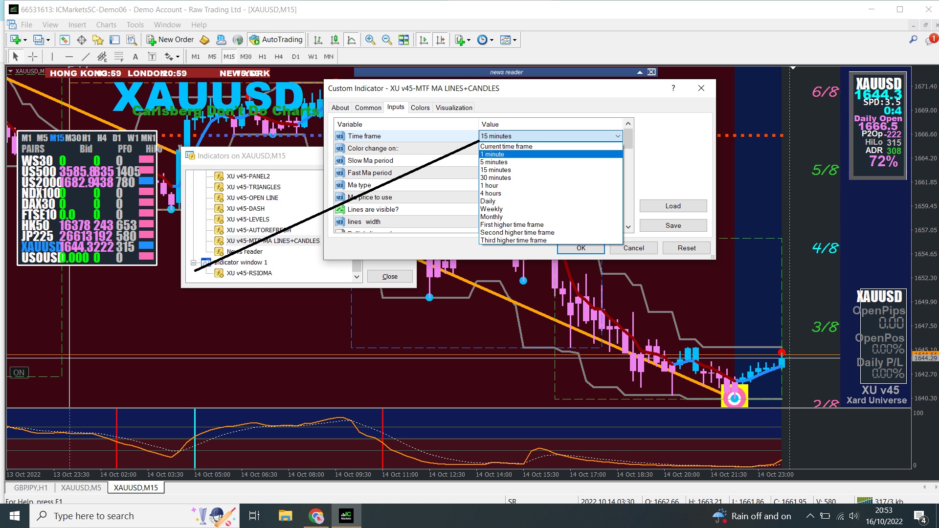 Template shared is I think 5MIN, and MA + LINE TF set to 15MIN as default, for higher TF like 15 MIN default should be 30MIN ? and In setting it should be first higger time frame.
