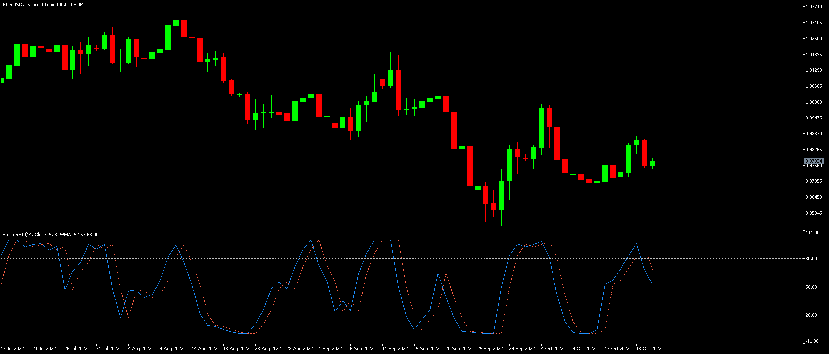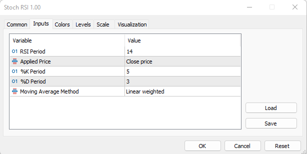 The stochastic of the relative strength index with a signal line. Can be used as a two Line Cross or a 50 line cross (zero line cross) or as over bought or over sold thresholds.