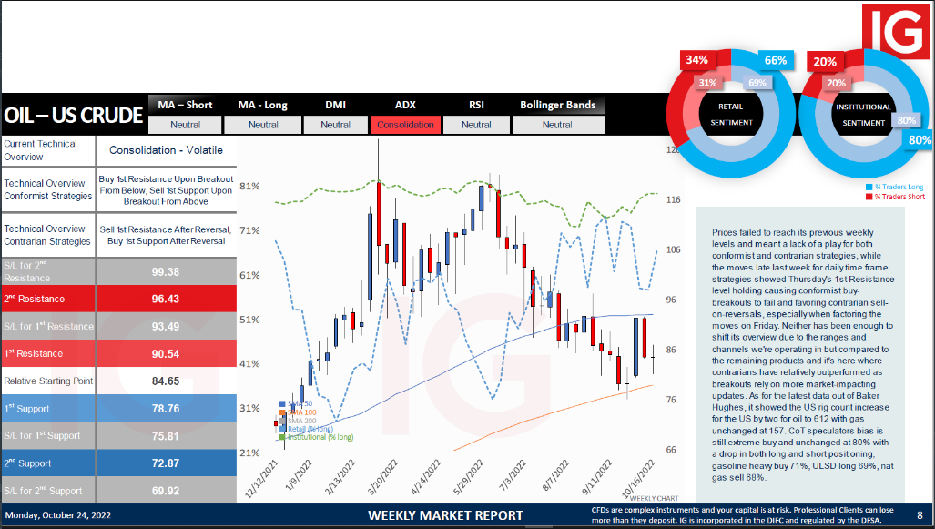 Retail (broker data) and institutional (from COT data) sentiment currently aligned (circles top right, inner = last week, outer = this week)