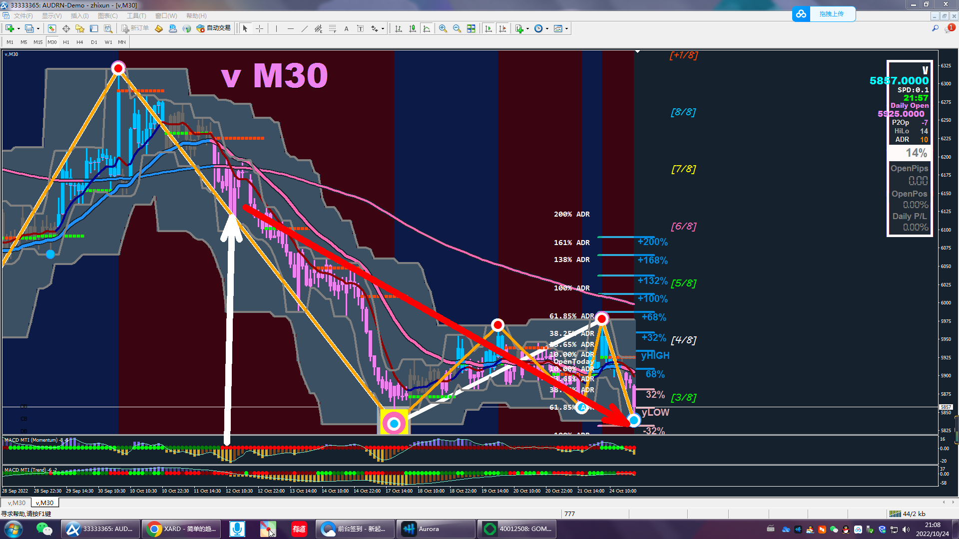 promixer wrote: Mon Oct 24, 2022 11:54 pm Nice. So you compare daily trend and only take trades depending on daily trend from the M30 semafor?