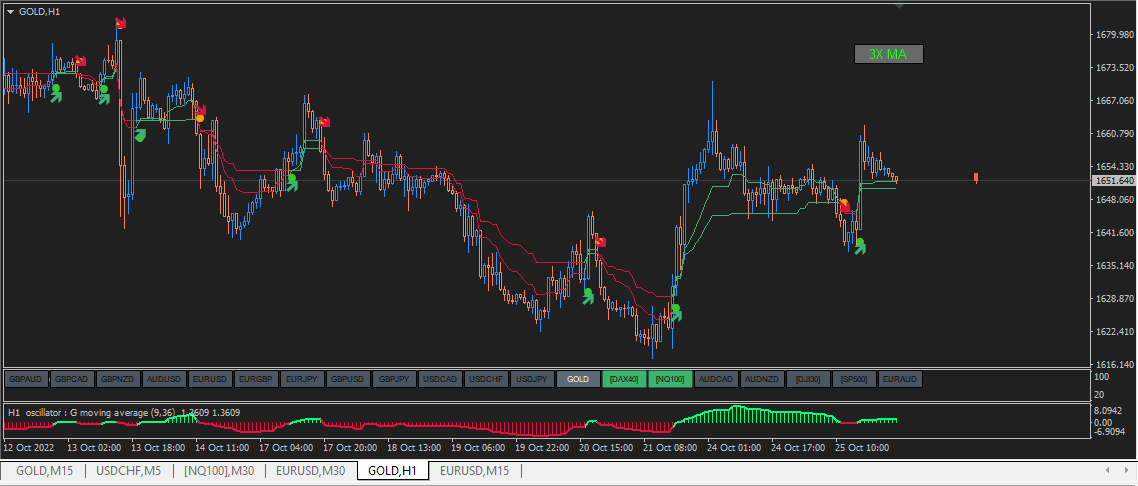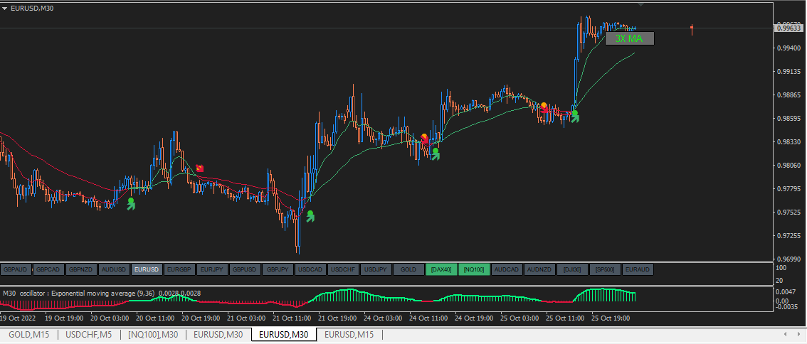 For the version which displays Histogram bars and can be dragged to the subwindow, please see: E-Averages Oscillator Histogram and for the Candlesticks version, please see E-Averages Candlesticks.