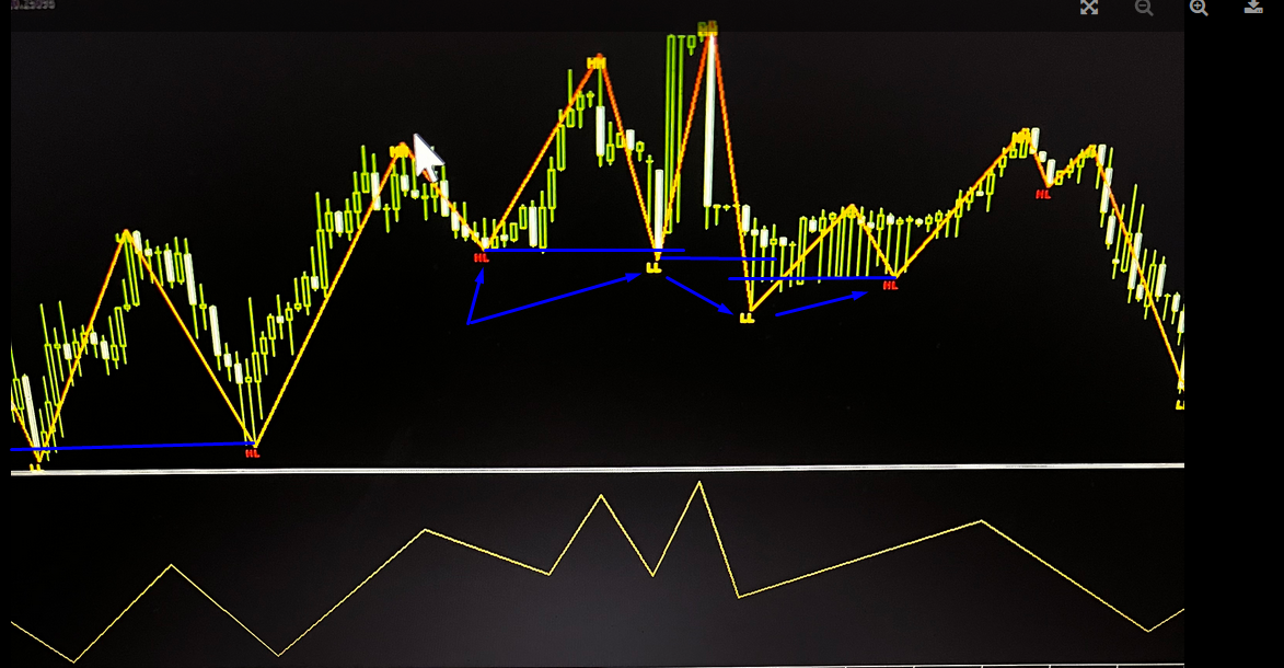 i draw lines in blue for clarity!!Lightningstorm7 wrote: Fri Oct 28, 2022 2:14 pm Hi, sorry for not detailing my request I would like for the zigzag separate indicator to display HH LL LH