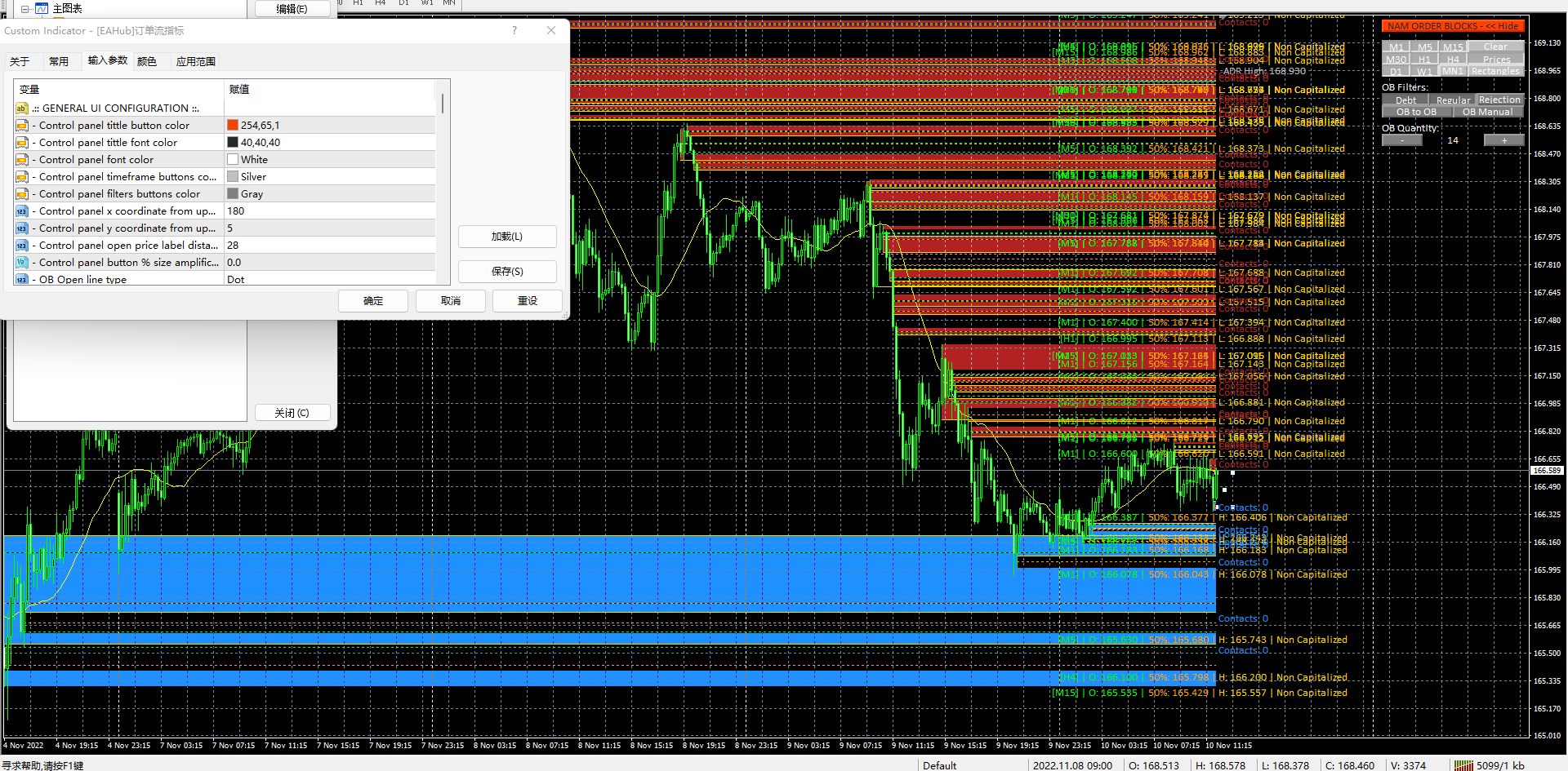 You will see at real time order blocks on any timeframe, with the use of our control panel you'll be able to detect regular, rejection and uncapitalized order blocks on the history period of choice.